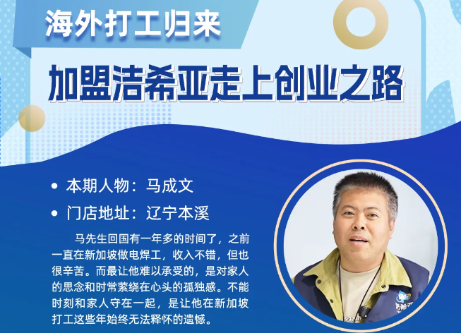 海外打工歸來(lái),加盟潔希亞走上創(chuàng)業(yè)之路